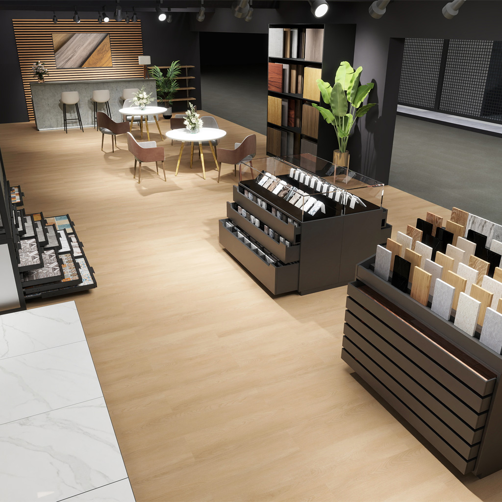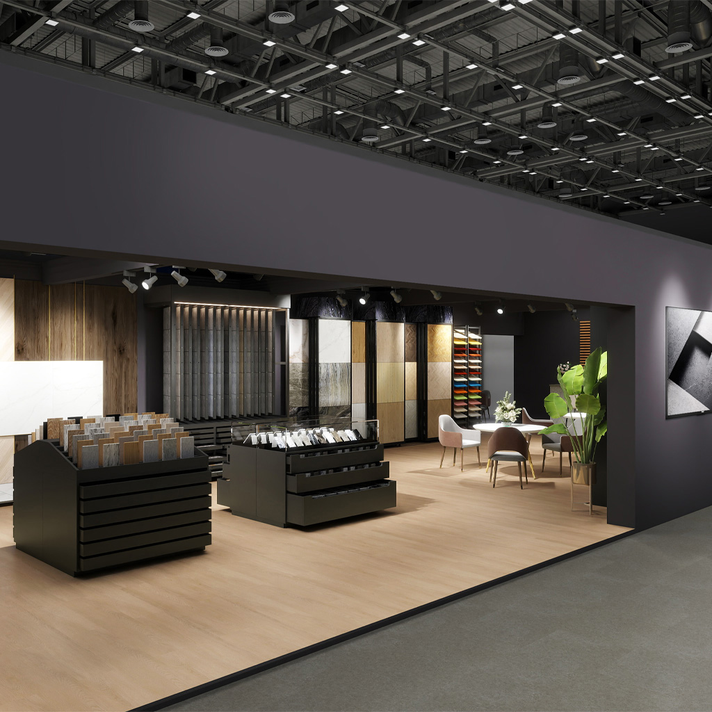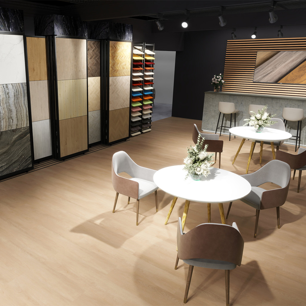 Pour les constructeurs de stands qui recherchent un look sophistiqué, la série 2100 offre l’équilibre parfait entre style et modestie. L’éclat subtil du gris dans les teintes de bois, associé à la douceur du motif, crée une esthétique intemporelle. Avec un choix de 4 teintes différentes, vous pouvez créer un environnement harmonieux qui met l’accent sur la conception de votre stand.