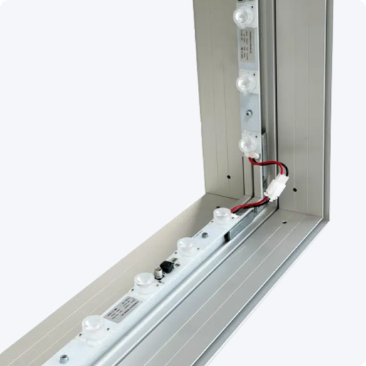 Le module edgelit UVAL se fixe facilement sur le cadre en aluminium de votre lightbox et offre une puissance lumineuse impressionnante de 1350 lumens grâce à cinq LED puissantes de 3 watts.